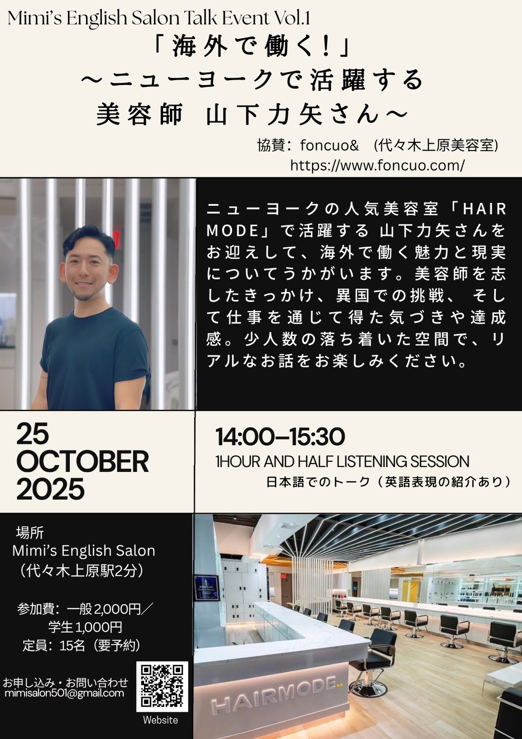 Mimi's English Salonで開催される特別講習やイベントのご案内です
